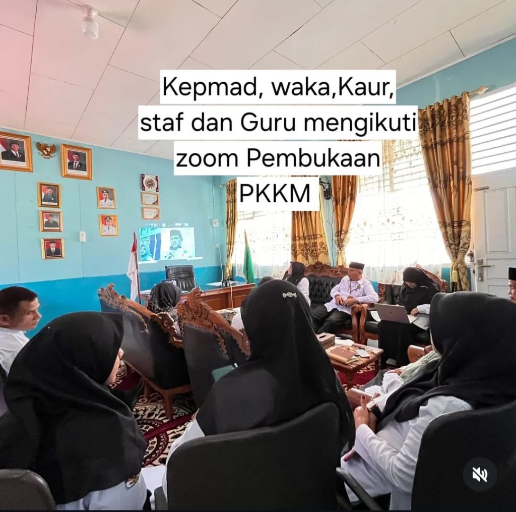 Kegiatan MTsN 4 Tanah Datar Mengikuti Zoom Pembukaan PKKM oleh Kemenag Tanah Datar